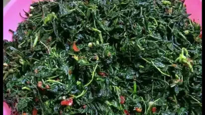 "Alhamdulillah masakan hari ini menunya adalah oseng daun ubi kayu yabg rasanya sangat khas banget. Masakan ini bisa menambah zat besi dan enak banget tergantung cara mengolahnya. Keluarga kami, sangat senang sekali dengan oseng daun ubi kayu ini" pungkas Anita warga Serasan Jaya Sekayu.