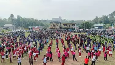 " Hari ini Tanggal 15 Agustus 2023 kita bersama ribuan masyarakat di 14 Desa fan Kelurahan melaksanakan senam sehat secara masal, ini merupakan wujud kebahagiaan masyarakat atas kemerdekaan Negara kita. Senam masal ini juga wujud kesatuan dan persatuan masyarakat di Kecamatan Keluang" pungkas Camat.