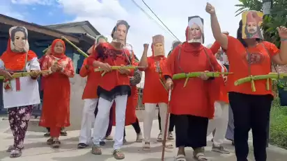HUT RI ke 78, Ibu Rumah Tangga Kenakan Topeng Pahlawan Upacara Bendera