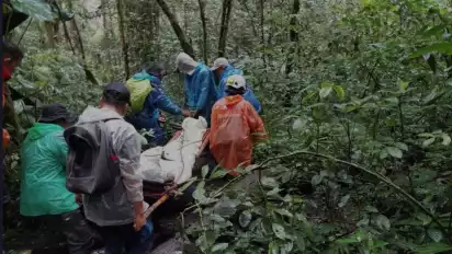 Kerinci, tvOnenews.com - Tim SAR gabungan yang terdiri dari Basarnas Pos SAR Kerinci, Balai TNKS, Organsisasi Mapala, dan warga, mengevakuasi seorang pendaki atas nama Martinus (31) asal Jakarta yang mengalami cidera saat melakukan pendakian di Gunung Kerinci.