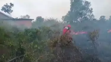 Ogan Ilir, tvOnenews.com - Kebakaran lahan di Ogan Ilir masih terus terjadi, kali ini di dekat pemukiman warga wilayah Desa Ibul Besar 1, Kecamatan Pemulutan. Informasi yang diterima di lapangan, kebakaran mulai terjadi pada Sabtu (19/8/2023) sore.