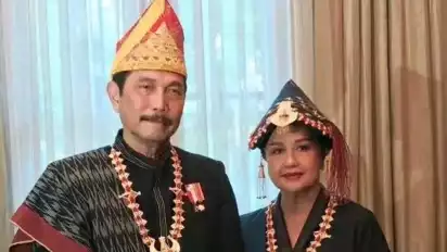 Luhut Binsar Pandjaitan & istri mengunakan pakaian baju adat Pakpak asal Kabupaten Dairi.