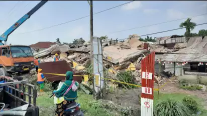 Binjai, tvOnenews.com - Setelah 10 tahun selesai dibangun dan tak berpenghuni, tujuh rumah toko (ruko) yang berada di jalan lintas Sumut - Aceh, tepatnya di Desa Tandam Hulu 2, Kecamatan Hamparan Perak, Kabupaten Deliserdang ambruk dan rata dengan tanah, Jumat (25/8/2023) siang. Sayangnya, bangunan yang ambruk malah menimpa dua rumah warga lainnya di kanan dan kiri ruko.