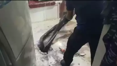 Proses evakuasi pun terbilang sengit, lantaran ular berukuran jumbo tersebut berada tepat di dalam lubang sehingga kesulitan untuk ditangkap.