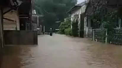 "Ketinggian banjir setinggi lutut orang dewasa. Begini lah keadaannya, rumah kita tergenang banjir," kata Desman Hermanto, warga Pondokbatu, Sarudik.