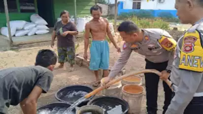 Polres Musi Banyuasin Bagikan Bantuan Air Bersih ke Warga Akibat Kemarau