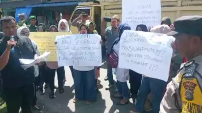 Puluhan Emak-Emak Aksi Protes Dugaan Penyelewengan Anggaran Dana Desa Sialang Muda Hamparan Perak Tahun 2022- 2023