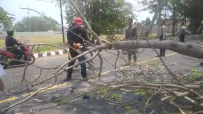 Batang pohon tersebut menutupi setengah badan Jalan Lintas Sumatera yang mengakibatkan jalur tersebut sempat terhambat.