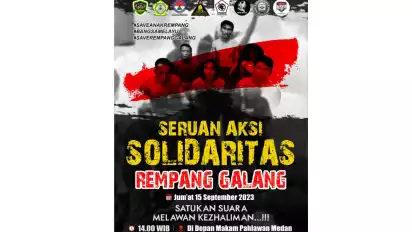 Seruan Aksi Bela Melayu Rempang dan Galang ini akan digelar di Makam Pahlawan Medan Jalan Sisingamangaraja, Kota Medan, Jumat (15/09/2023) pukul 14.00 WIB.