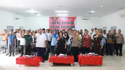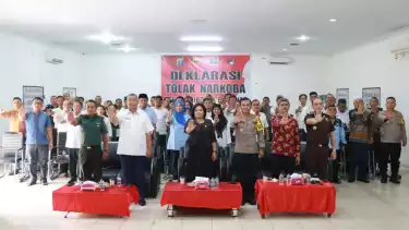 Sibolga, tvOnenews.com - Polres Sibolga melaksanakan kegiatan Deklarasi Tolak Narkoba menuju Sibolga "BERSINAR" (Bersih dari Narkoba). Acara yang berlangsung di Aula Wira Pratama Polres Sibolga pada Rabu kemarin (13/9/2023) ini dihadiri oleh berbagai Tokoh dan Stakeholder penting yang turut berkomitmen dalam melawan peredaran gelap Narkoba di Kota Sibolga.