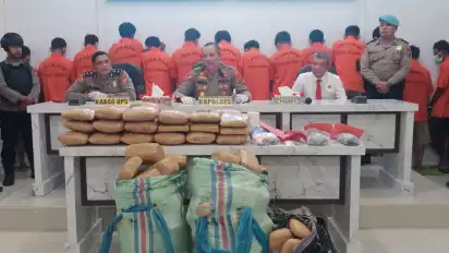 Mandailing Natal, tvOnenews.com - Dalam seminggu terakhir, Polres Mandailing Natal ( Madina) jajaran berhasil mengungkap 25 kasus narkotika dengan 32 tersangka. 92 Kg ganja kering, 68 gram sabu-sabu, uang sekitar Rp12 juta, 14 unit HP, 5 unit sepeda motor dan satu unit mobil minibus diamankan polisi sebagai barang bukti.
