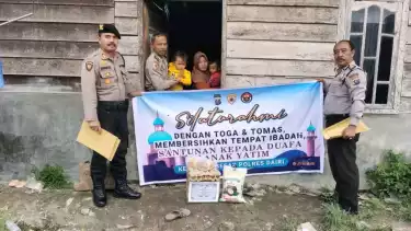 Dairi, tvOnenews.com - Peringati Maulid Nabi Muhammad SAW 1445 H/2023 M. Personil Polres Dairi yang Beragama Islam memberikan Bantuan Sosial berupa sembako kepada Kaum Duafa dan anak yatim. Kamis (28/09/2023).