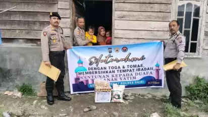 Dairi, tvOnenews.com - Peringati Maulid Nabi Muhammad SAW 1445 H/2023 M. Personil Polres Dairi yang Beragama Islam memberikan Bantuan Sosial berupa sembako kepada Kaum Duafa dan anak yatim. Kamis (28/09/2023).Â