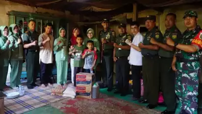"Disamping memberikan bantuan sembako, kita juga memberikan pelayanan kesehatan kepada warga sekitarnya", ucap Dandim.