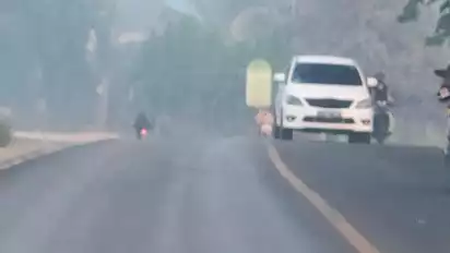 Musi Banyuasin, tvOnenews.com - Kabut asap yang melanda sebagian wilayah Sumatera Selatan membuat warga resah. Kabut asap yang sudah mulai masuk perkampungan serta rumah warga, kini juga mulai menyelimuti Jalur Lintas Timur Sumatera.