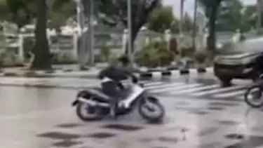 Medan, tvOnenews.com - Beredarnya video viral di media sosial, memperlihatkan pengendara sepeda motor yang terpeleset dan terjatuh di simpang Jalan Sudirman Medan, Sumatera Utara, senin (20/11/2023) sore kemarin, tepatnya persis di depan Rumah Dinas Gubernur Sumut.