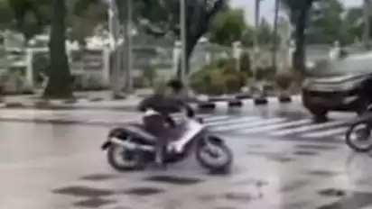 Beredarnya video viral di media sosial, memperlihatkan pengendara sepeda motor yang terpeleset dan terjatuh di simpang Jalan Sudirman Medan, Sumatera Utara, senin (20/11/2023) sore kemarin, tepatnya persis di depan Rumah Dinas Gubernur Sumut.