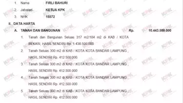 Wah! Tersangka Firli Bahuri Miliki 4 Aset Tanah Senilai Rp1,6 M di Bandar Lampung