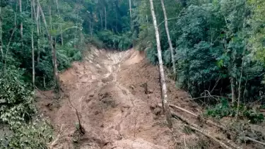“Tanah longsor itu juga turut membawa kayu besar yang tumbang dan menutup ruas jalan tersebut, dan tidak ada korban jiwa maupun kendaraan yang tertimbun," jelasnya, Senin (18/12/2023).