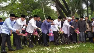 "Tempat ini dulu saya bersama almarhumah istri tercinta dan Menteri Agama (almarhum) melihat jenazah para syuhada (korban tsunami Aceh)," kata SBY di kuburan massal Siron di Kecamatan Ingin Jaya, Aceh Besar, Senin (25/12/2023).