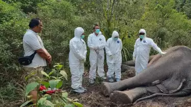 Lampung Timur, tvOnenews.com - Taman Nasional Way Kambas (TNWK) melakukan investigasi terhadap matinya satu ekor gajah sumatera di TNWK bernama Dugul.