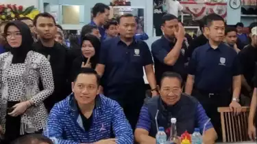 Saat hendak memasuki warung, SBY dan putranya AHY disambut dengan teriakkan hangat. "Pak presiden kami duluu," ucap salah satu emak-emak yang sebelumnya sudah menanti kedatangan SBY bersama putranya AHY.