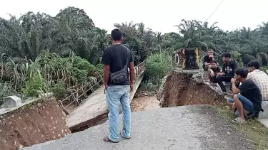 Padang lawas, tvonenews.com - Jembatan Desa Batang Buluh Baru penghubung antar dua Kecamatan di Kabupaten Padang Lawas ambruk pada Sabtu (30/12/2023).
