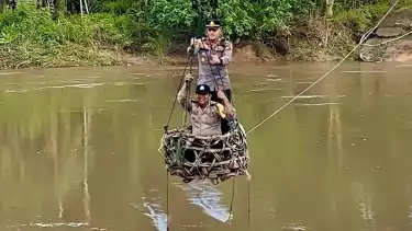 Rokan Hulu, tvonenews.com - Dengan menggunakan "keranjang terbang" atau flying fox, personel polisi lakukan cooling system terhadap masyarakat di Kecamatan Rambah Hilir Kabupaten Rokan Hulu, Riau (7/1/2024).