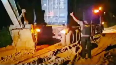 Saat tiba di Taluk Kuantan, truk kontainer ini terjebak lumpur dan tidak bisa menlanjutkan perjalanan. Personel yang bertugas saat itu, terpaksa bekerja ekstra dan mengerahkan alat berat untuk mengeluarkan truk kontainer yang terjebak lumpur tersebut.
