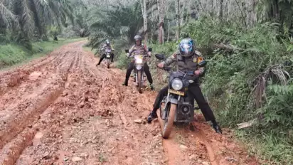 Rokan Hulu, tvOnenews.com - Dengan menggunakan sepeda motor, petugas keluar masuk hutan untuk mendatangi sejumlah perkampungan, Rabu (10/1/2024). Kegiatan Polres Rokan Hulu Polda Riau, di Desa Pasir Maju, Kecamatan Rambah, Kabupaten Rokan ini, demi mewujudkan Pemilu 2024 yang damai dan kondusif.