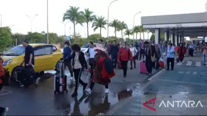 Batam, tvOnenews.com - Sebanyak 133 penumpang penerbangan perdana dari Kunming, China, tiba di Bandara Internasional Hang Nadim Batam, Kepri, Minggu pagi (21/1/2024).