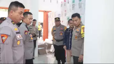 Riau, tvOnenews.com - Pengamanan Standar Operasional Prosedur (SOP) dilakukan Perwira Pengamatan Wilayah (Pamatwil) Polda Riau saat supervisi serta monitoring ke Gudang Logistik KPU Rokan Hulu, Rabu (24/1/2024).