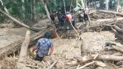 Pantauan tvOnenews di lapangan, luapan air Sungai Batang Taris yang menghantam permukiman warga sudah mulai surut. BPBD, TNI dan Polri bersama warga setempat sudah mulai membersihkan material longsor menggunakan satu unit alat berat jenis beko.
