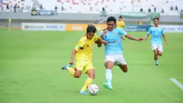Palembang, tvOnenews.com - Pertandingan babak playoff degradasi Liga 2 antara Sriwijaya FC dan Perserang Serang berakhir imbang tanpa gol di Stadion Gelora Sriwijaya Jakabaring pada Jumat (2/1/2024).