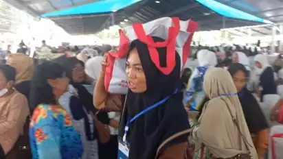 Ribuan warga inipun pulang dengan membawa bingkisan yang bertuliskan "Bantuan Presiden Republik Indonesia".