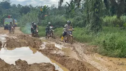 “Kondisi jalan licin, hampir seluruhnya berlumpur. Untuk mempermudah jalannya logistik pemilu, kita memakai mobil crane untuk menarik mobil saat terpuruk. Bahkan, kita juga menyiapkan eskavator dan loder apabila terpuruk, tentunya dalam prosesnya kita dampingi dan kawal sampai ke PPK dengan aman,” ujar Kapolres Rokan Hulu, AKBP Budi.