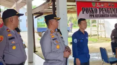 Rokan Hulu, tvOnenews.com - Personel Polres Rokan Hulu dibantu Brimob dan Samapta Polda Riau serta TNI mengamankan kantor PPK di seluruh kecamatan di Kabupaten Rokan Hulu, Minggu pagi (18/2/2024).