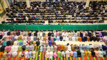 Medan, tvOnenews.com - Pj Gubernur Sumut, Hassanudin salat tawarih perdana 1 Ramadan 1445 Hijriah bersama ribuan warga Kota Medan di Masjid Agung yang baru, Senin (11/3/2024) malam.