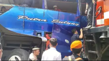 Diketahui bahwa bus penumpang Putra Sulung datang dari arah Belitang menuju Jakarta, kemudian ditabrak oleh kereta api penumpang dari arah Raja Basa menuju Baturaja di perlintasan tanpa palang pintu di Jalan Pertanian, Kecamatan Martapura, Kabupaten OKU Timur, Sumatera Selatan. (hsn/ebs)