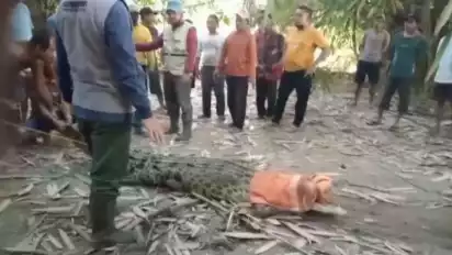 Buaya tersebut kerap menyerang dan menggigit warga di wilayah Pekon Sripurnomo, Kecamatan Semaka, Kabupaten Tanggamus.