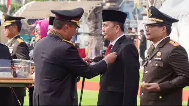 Palembang, tvOnenews.com - Penjabat (Pj) Gubernur Sumatera Utara (Sumut), Agus Fatoni, menerima penghargaan berupa pin emas, piagam dan tongkat dari Kapolri Jenderal Listyo Sigit Prabowo.