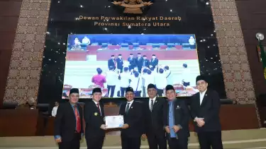 Turut hadir dalam kesempatan ini, di antaranya para pimpinan dewan, pimpinan fraksi, anggota dewan serta para pimpinan OPD Pemprov Sumut bersama jajaran. (tim tvOne/wna)