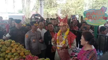 Karo, tvOnenews.com - Festival Bunga dan Buah Berastagi 2024 yang diselenggarakan di Taman Mejuah Juah Kota Berastagi, Kabuaten Karo, mendapat perhatian oleh masyarakat. Dimana event nasional yang berlangsung selama tiga hari ini selain menyajikan buah dan bunga, juga menghadirkan pertunjukkan seni dan budaya.