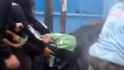 Medan, tvOnenews.com - Truk pengangkut aspal panas terguling dan menimpa seorang driver ojol yang sedang menunggu orderan di Jalan Kenanga Raya, Kelurahan Tanjung Sari, Kecamatan Medan Selayang, pada Sabtu sore (20/7/2024).