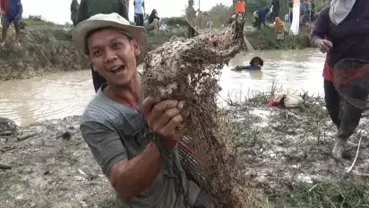 Batanghari, tvOnenews.com - Ribuan warga di Desa Pasar Terusan, Kecamatan Muara Bulan, Batanghari, Jambi menggelar tradisi bekarang atau menangkap ikan di sebuah sawah Lubuk Separantu yang dikenal angker, pada Sabtu (3/8/2024) pagi.