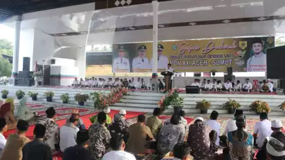 "Tentunya kita (Sumut-red) sebagai tuan rumah pada PON ini akan menjadi juara dengan meraih semua emas pada seluruh Cabor yang dipertandingkan," ucap Fatoni yang diaminkan ribuan masyarakat.