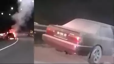 Riau - Satu unit mobil jenis sedan terbakar di ruas Jalan Tol Pekanbaru-Dumai tepatnya di kilometer 8 tidak jauh dari pintu masuk Tol Minas, sekitar pukul 19.40 WIB, Senin (24/01/22).