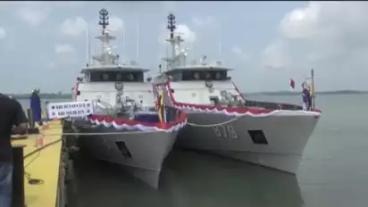 Batam, tvOnenews.com - TNI AL meresmikan pengoperasian dua Kapal Republik Indonesia (KRI) Jenis PC 40 di Citra Shipyard Batam, Kamis (5/9/2024).