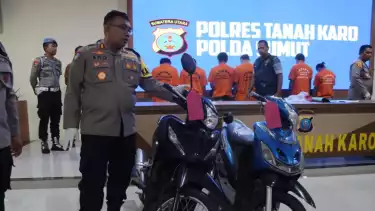 Karo, tvOnenews.com - Tujuh pelaku kasus Pencurian Kendaraan Bermotor (Ranmor) berhasil diringkus oleh pihak kepolisian Polres Tanah Karo yang beraksi di sejumlah wilayah hukum Polres Tanah Karo dan Polres Dairi.