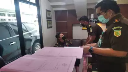 Tim Kejaksaan Agung dan Kejati Sumsel, melimpahkan berkas perkara empat tersangka dugaan korupsi Perusahaan Daerah Pertambangan dan Energi (PDPDE) di PN Tipikor Palembang, Rabu (26/1/2022)